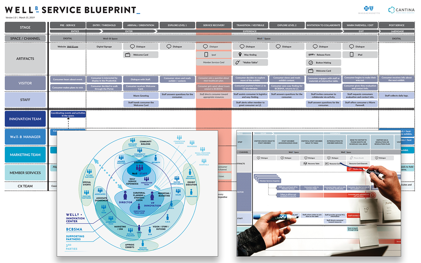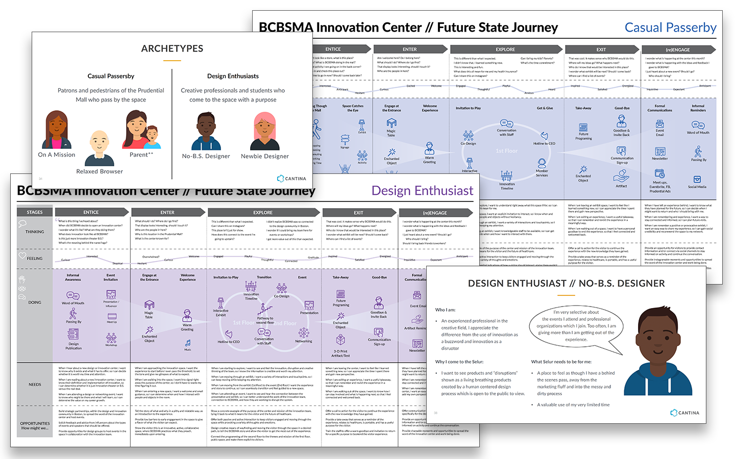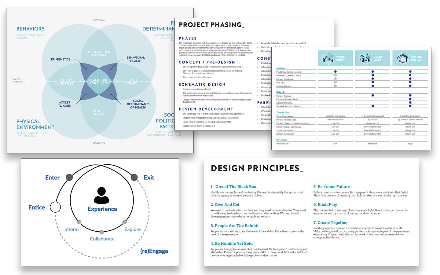 BCBSMA is a not-for-profit who was interested in engaging with the public, bringing innovation to healthcare, and improving the lives of it’s members. They acquired a retail space to exhibit the work of their innovation lab, educate the public, co-design solutions, and host events. As this was the first space they had opened of it’s kind, BCBSMA was looking for a partner to help design the interactions and experience within the space.